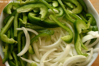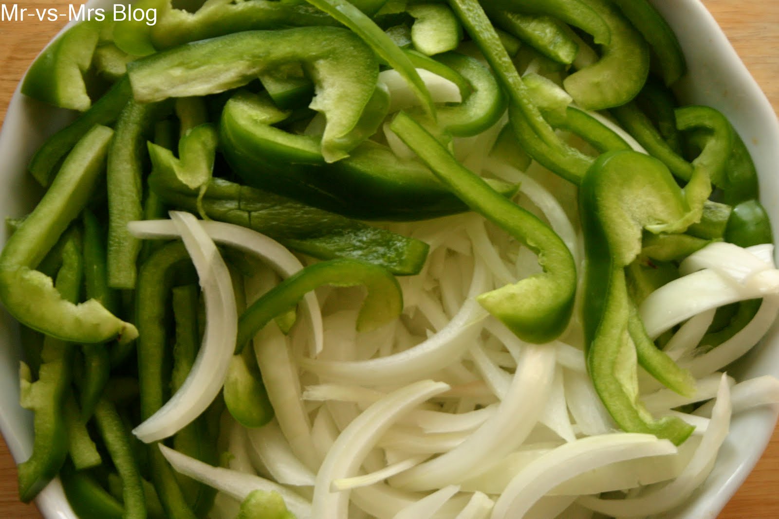 Slice up the onion and bell pepper. Usually I leave the onion in rings,
