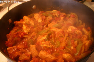 I have to brag about my fantastic Mr., he made the most delicious chicken fajitas I've ever tasted (take THAT overpriced restaurants!)! It was all on the fly and he doesn't really use measurements, but these are pretty good estimations. He recommends adding mushrooms, if you like them (I don't), while cooking the bell pepper, tomato, and onion. We decided to save the leftover goodness from the pan and freeze it for later. Enjoy this delicious meal that doesn't require heating up a grill!