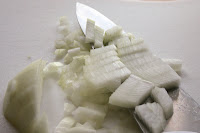 1 medium onion (I always buy sweet yellow onions...), in rings or strips